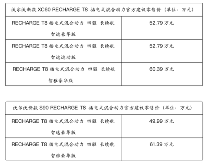 豪华性能 双重享受 沃尔沃新款XC60 RECHARGE T8、新款S90 RECHARGE T8升级上市