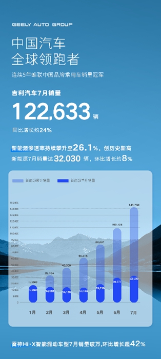 吉利汽车7月销量202533辆 新能源、中国星占比再创新高