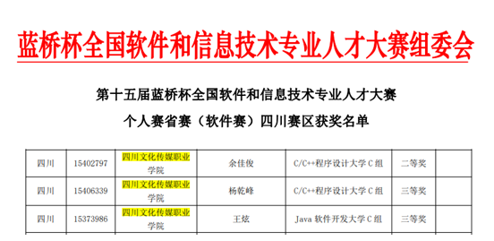 四川文传学院学生在“蓝桥杯”全国软件和信息技术专业人才大赛四川赛区中获佳绩