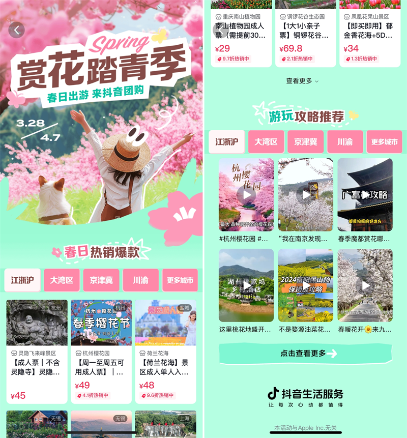清明小长假将至 抖音生活服务春游酒旅销量增7成 春鲜餐饮套餐涨幅超10倍