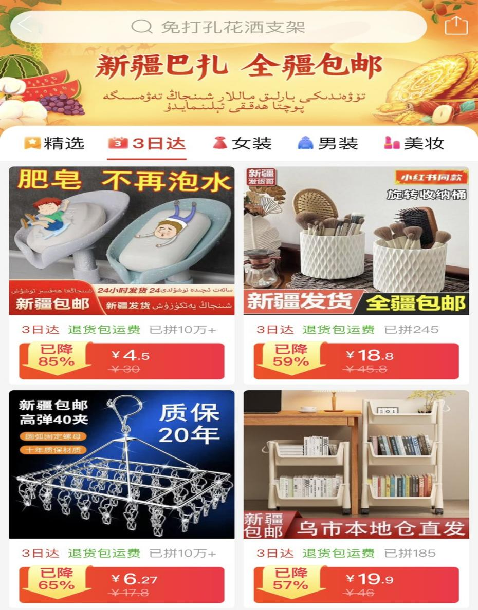 拼多多升级“新疆包邮”:免费送进村,紧急还能3日达
