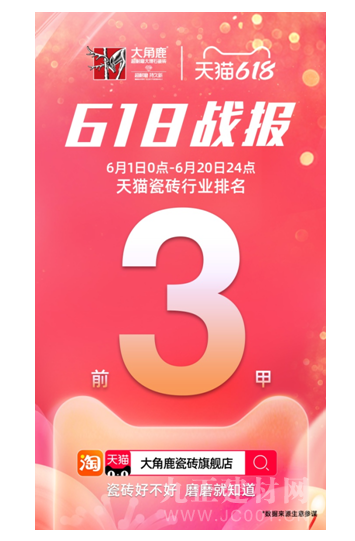 618天猫瓷砖品牌销售榜出炉,大角鹿荣登前三甲!